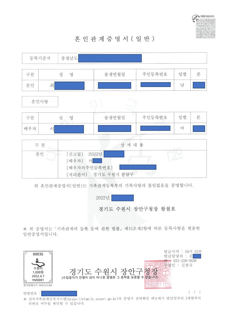 È¥ÀÎ½Å°í°¡ ¿Ï·áµÇ°í È¥Àΰü°èÁõ¸í¼¸¦ ½ºÄµÇÏ¿© º¸³»µå·È´õ´Ï